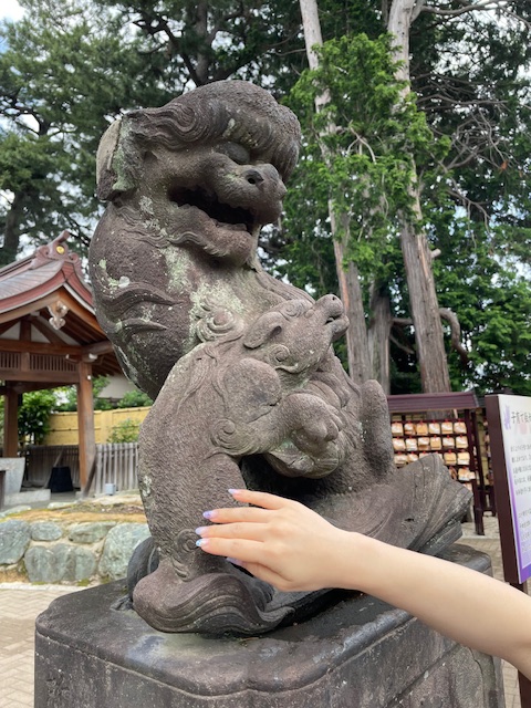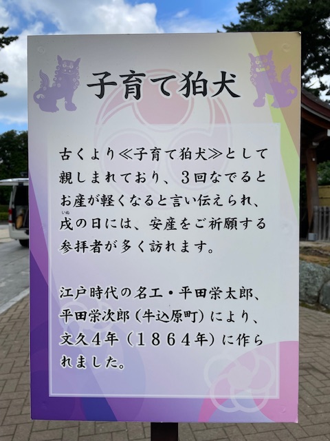 子供(子犬)を抱いてあやしている姿をしているため、「子育て狛犬」と呼ばれているそう。