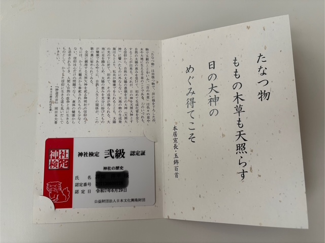 3級と比べて明らかに難しかった神社検定2級。勉強不足も相まって苦戦を強いられました。