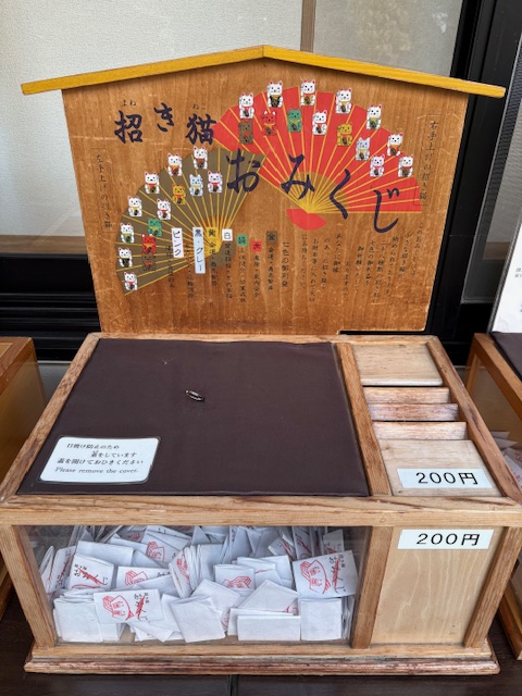 備え付けられた箱にお金を入れて、自分で蓋を開けておみくじを引くスタイルです。