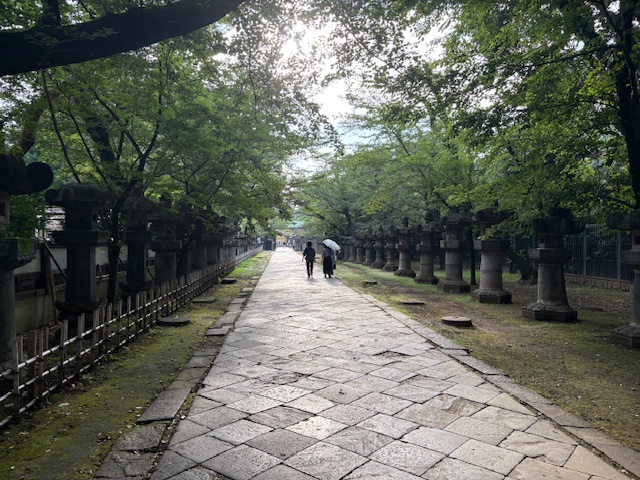 識子さん曰く、この辺りから空気が変わり、現代ではなく江戸時代の「氣」に変化。足元の石畳も相まって懐かしい気持ちになるそうです。